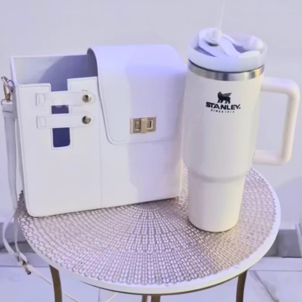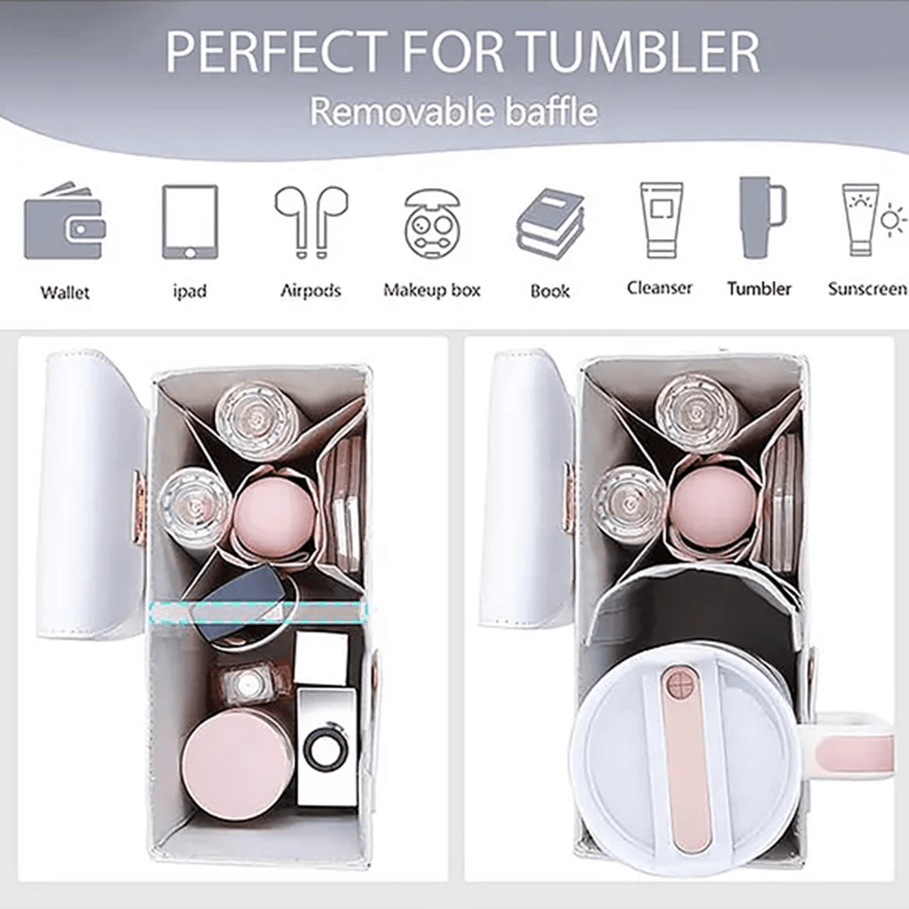 💧🤍🌸 Secure Bottle Holder – Adjustable holder fits most tumblers safely and snugly.