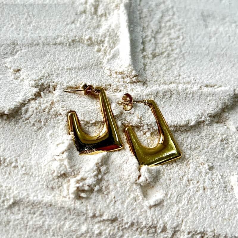Modern geometric gold hoops with sleek edges. Anti-tarnish finish for a lasting shine. ✨