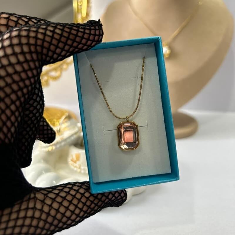 The Crystal Poise Pendant features a pale golden-brown stone in a sleek octagon-inspired frame with an anti-tarnish finish – an embodiment of subtle elegance. ✨