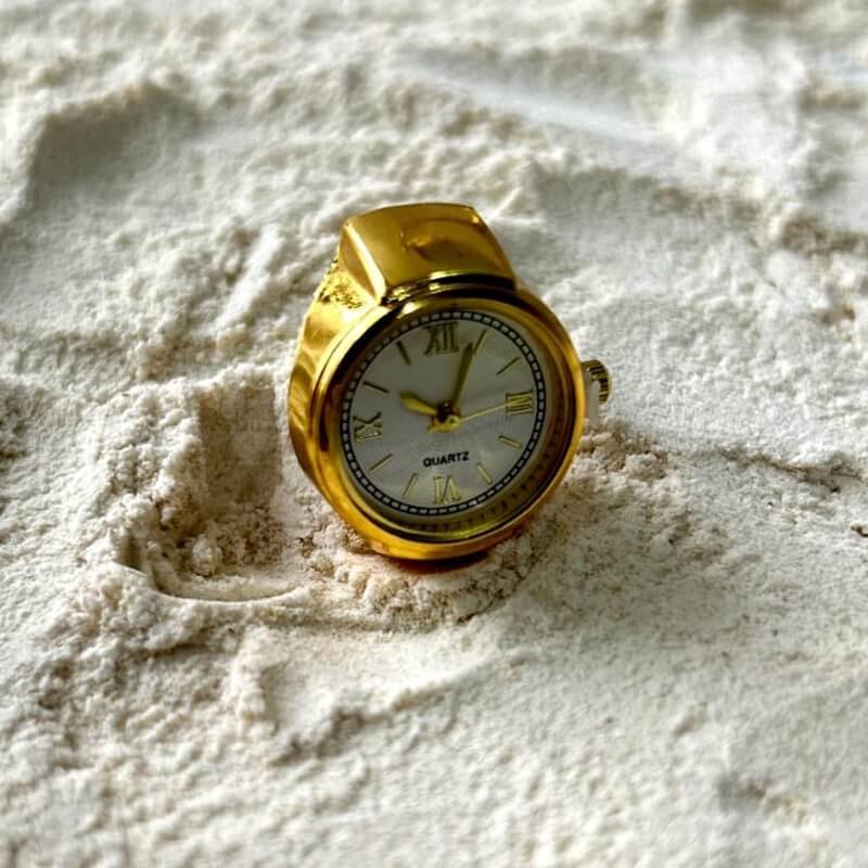 A stylish golden-toned watch ring with a crisp white dial, blending modern charm with timeless appeal. 💛